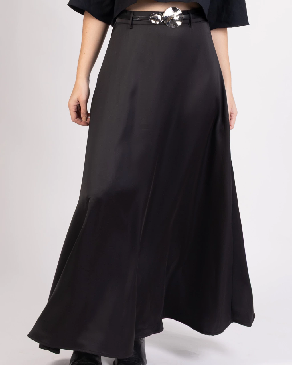 Descubra a elegância atemporal da nossa Saia Longa Evasê Acetinada, peça-chave para compor looks no estilo boho, western, folk ou clássico elegante. Confeccionada em cetim de alta qualidade, a saia apresenta um caimento fluido e sofisticado, com brilho acetinado na medida certa, perfeito para quem busca autenticidade com toque refinado.